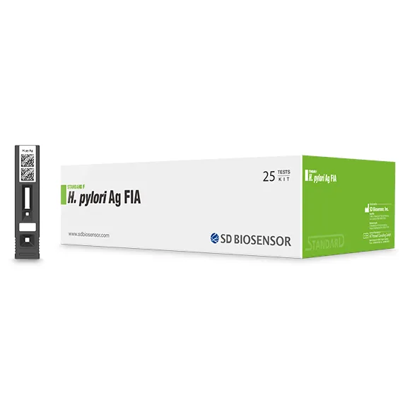 STANDARD F H. pylori Ag FIA je kvalitativní imunologický test pro detekci H. pylori Ag ve vzorku lidské stolice. Test je určen pro in vitro diagnostiku jako pomůcka pro včasnou diagnostiku infekce H. pylori Ag. Je určen pro profesionální použití, pouze pro počáteční screeningový test.