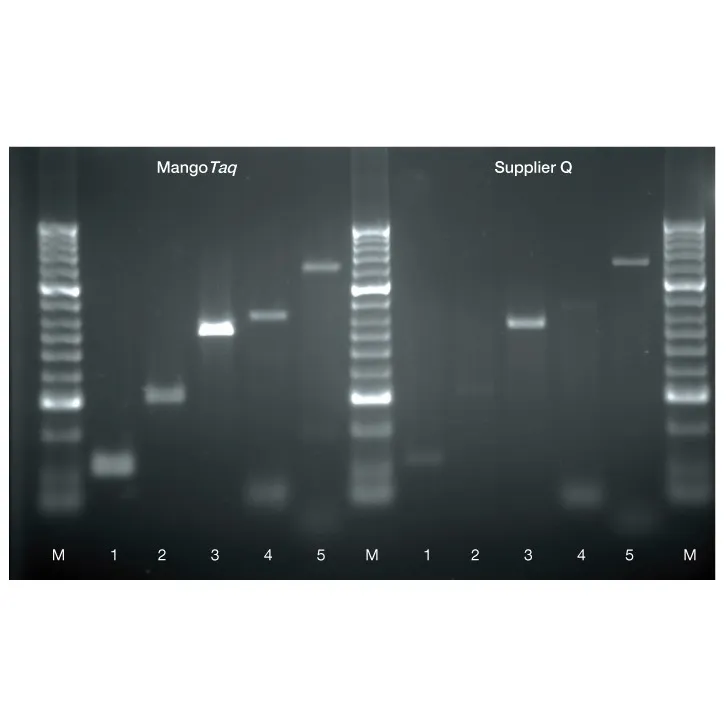 MangoMix je ready-to-go 2x koncentrovaný mix termostabilní Taq polymerázy, dNTP a barevného reakčního pufru (2 barvičky - červená a oranžová pro přímé nanášení na gel a zároveň sledování mobility DNA v gelu) poskytující vysoký výtěžek z různých typů použitých PCR templátů. Vhodná pro běžné a rutinní PCR aplikace, kombinuje vysoký výtěžek s nízkým pozadím. MangoTAQ vykazuje 5´-3´ exonukleázovou aktivitu a zanechává ´A´ přesahy, proto je vhodná pro klonování.
