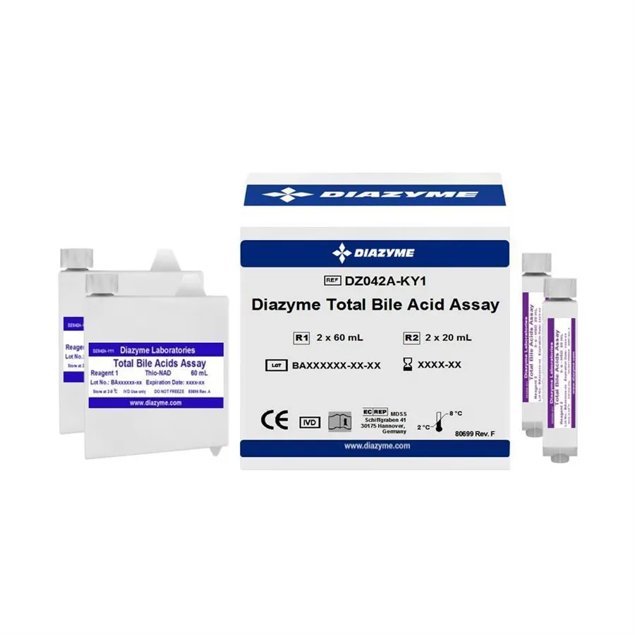 Souprava je určena pro kvantitativní stanovení celkové koncentrace žlučových kyselin (TBA) metodou enzyme cycling . Reagencie jsou dodávány v systémových baleních pro analyzátory Olympus na 400 testů. Žlučové kyseliny slouží jako marker normální a abnormální funkce jater. Celkové množství žlučových kyselin v séru se zvyšuje u pacientů s onemocněním jater.