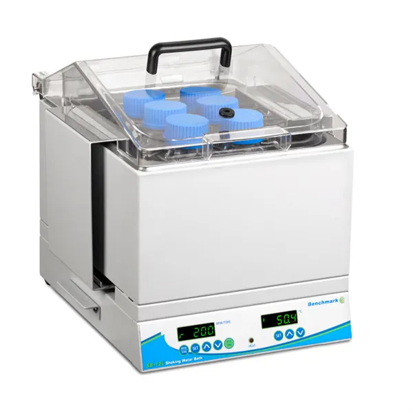 Třepací vodní lázeň s kapacitou 12 litrů.Kompaktní třepací vodní lázeň. Přímý motorový pohon bez řemenu. Bezešvá vana z nerezové oceli. Univerzální pružinová platforma pro spolehlivé uchycení 15 a 50 ml zkumavek, Erlenmeyer lahví a lahví na média až do 1 litru. Odnímatelné víko. Snadné ovládání a sledování parametrů na digitálním displeji.• kapacita: 12 l• rozměry vany: 30 x 24 x 15,2 cm