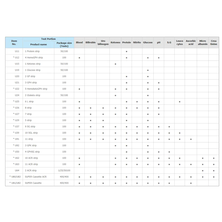 Poloautomatický analyzátor pro měření jednotlivých močových proužků firmy YD. Možnost měření proužků se 4 až 11 parametry. Reflektometrický princip měření. Snímání CCD senzorem RGB x 5400 pixelů. Dotyková obrazovka.